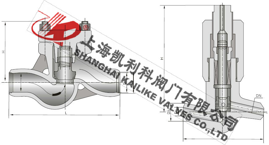 H61Y、H61H高壓升降式止回閥支管兩端為焊結(jié)結(jié)構(gòu),焊結(jié)坡口可按標(biāo)準(zhǔn)或用戶要求制作,適用于火電廠、石油化工、冶金等高溫高壓的水、蒸氣、油品、過熱蒸汽的管道上作防止介質(zhì)回流的裝置。一種是遵循ANSIB16.34和JIS E101標(biāo)準(zhǔn)的引進(jìn)型;另一種是Jb3595標(biāo)準(zhǔn)的國(guó)標(biāo)型。其遵循的溫度、壓力等級(jí)是一致的,在一些管道中存在著某種互換關(guān)系。中部采用無閥蓋壓力自緊式,在高溫高壓工況下具有良好的密封性能。