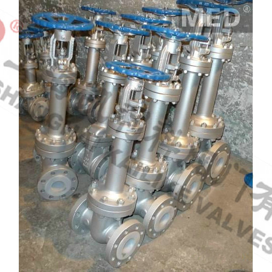 WZ41H波紋管閘閥適用于公稱壓力PN1.6~16MPa,工作溫度-29~350℃的石油、化工、制藥、化肥、電力行業(yè)等各種工況的管路上,切斷或接通管路介質(zhì)。波紋管閘閥的主要特點(diǎn):產(chǎn)品結(jié)構(gòu)合理、密封可靠、性能優(yōu)良、造型美觀;密封面堆焊Co基硬質(zhì)合金、耐磨、耐腐、抗摩擦性能好、使用壽命長;閥桿調(diào)質(zhì)及表面氮化處理,有良好的抗腐和抗摩擦性能;雙重密封,性能更可靠;閥桿升降位置指示,更直觀;零件材質(zhì)及法蘭、對焊端尺寸可根據(jù)實(shí)際工況或用戶要求合理選配,滿足各種工程需要。波紋管閘閥的閥桿采用波紋管及填料雙重密封結(jié)構(gòu),確保閥桿處的無泄漏密封,特別適用于易燃、易爆、有毒及貴重介質(zhì)的管路。